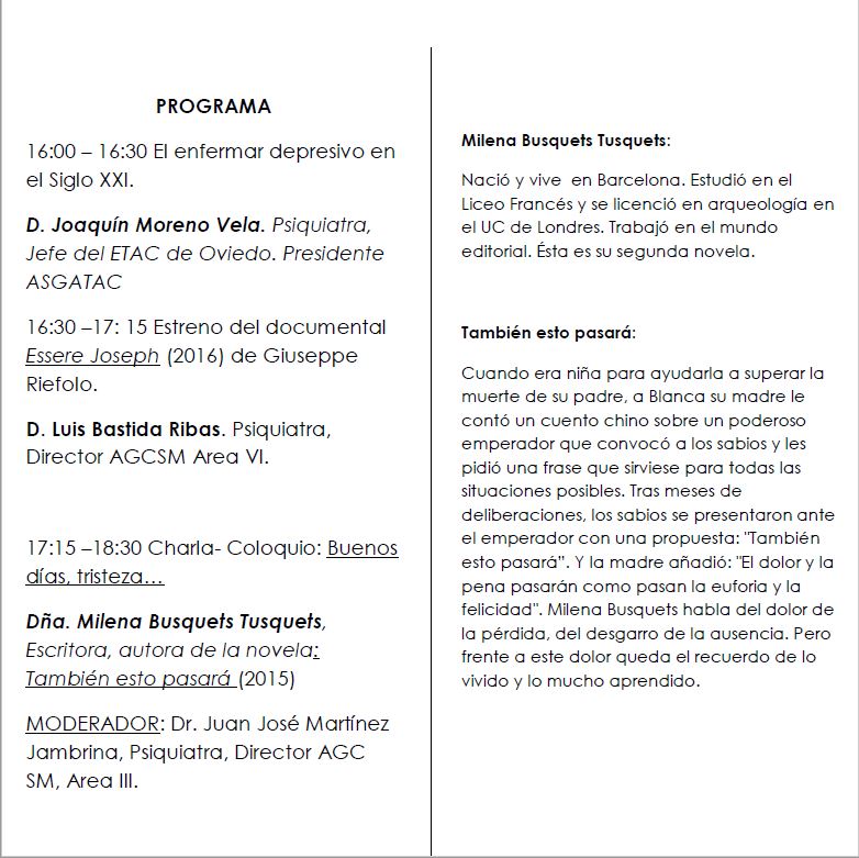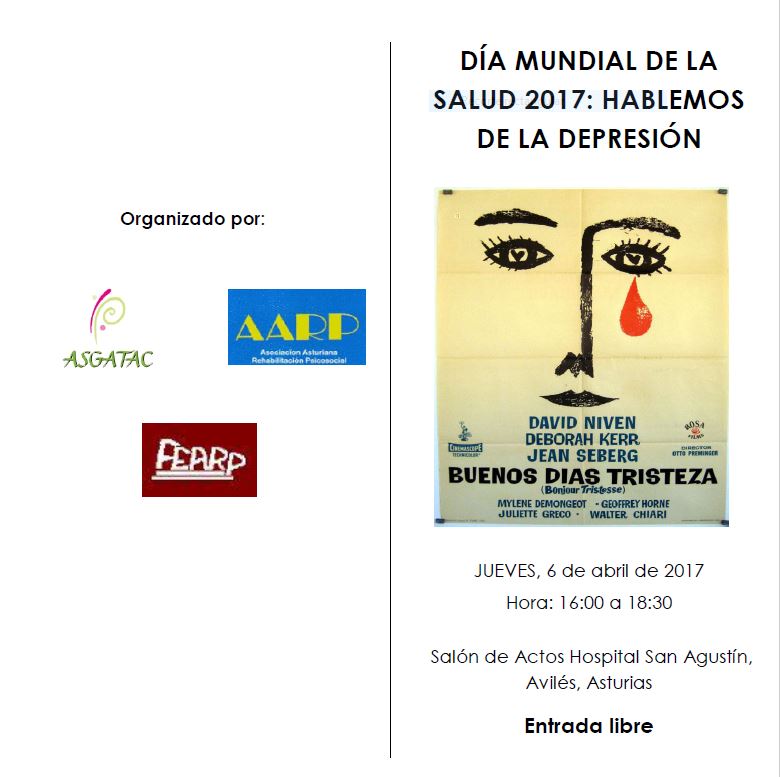 El 6 de abril Acto de celebración del Día Mundial de la Salud: La depresión. Entrada gratuita.